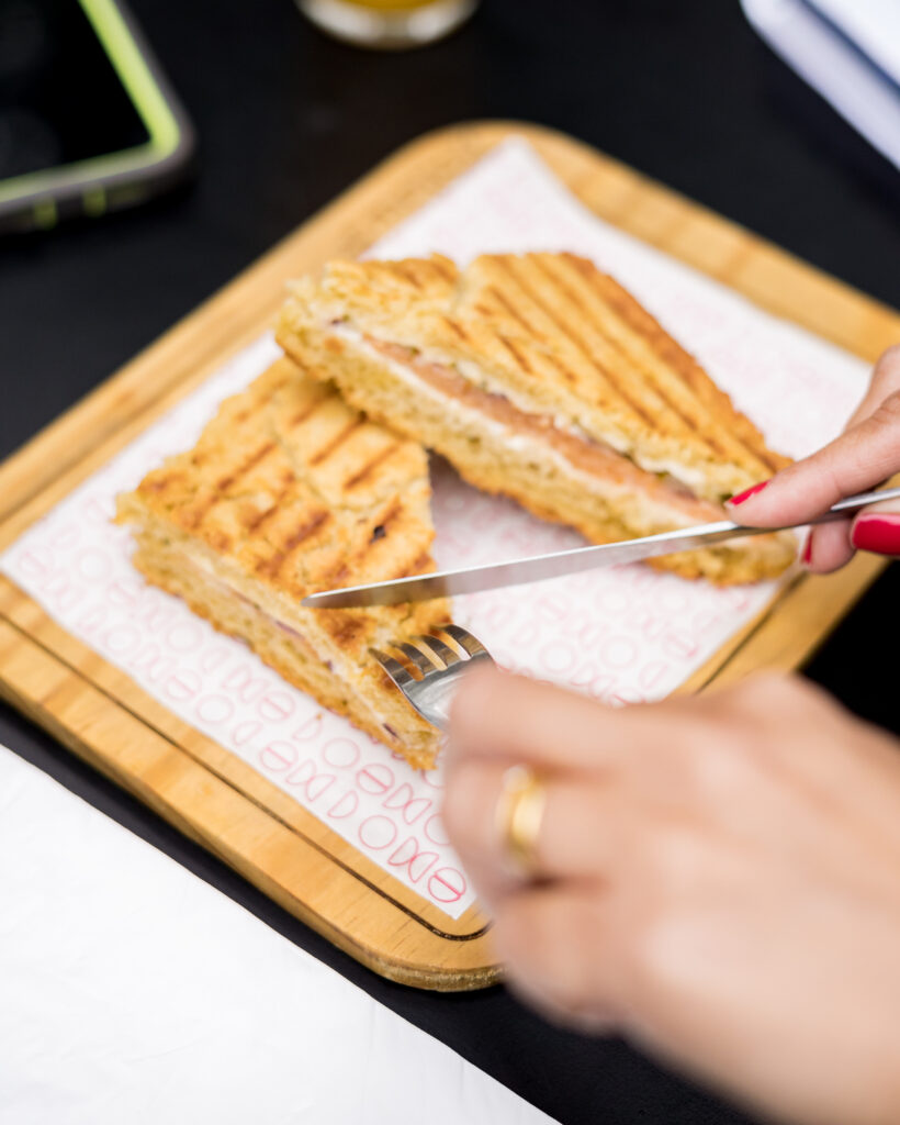 Entre as novidades do Metiers, o sanduíche de brie com pistache se destaca pela combinação equilibrada e sofisticada. Primeiramente, o brioche artesanal levemente tostado cria a base perfeita. Em seguida, o queijo brie cremoso se encontra com a geleia de morango da casa e o toque crocante do pistache.